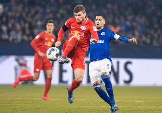 Omar Mascarell pugna con un balón con el delantero del Leipzig Timo Werner - Bernd Thissen/dpa - Archivo