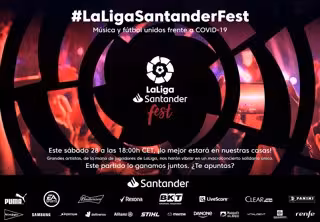 Más de medio centenar de artistas y futbolistas participarán este sábado en LaLiga Santander Fest, un festival benéfico de calado internacional que tendrá el doble objetivo de recaudar fondos para combatir la pandemia del COVID-19 y apoyar a los aficionados que se ven obligados a permanecer en sus hogares en estas semanas de cuarentena.