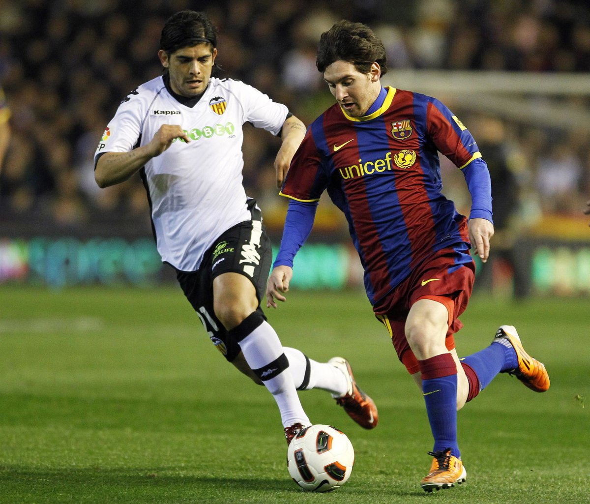 El Valencia le puso un ritmo trepidante al inicio del choque. Los locales cercaron la salida del conjunto blaugrana y durante los primeros minutos descolocaron a los de Guardiola. Precisamente el técnico catalán había dispuesto un sistema poco habitual con Busquets como tercer central escoltado por Piqué y Abidal.