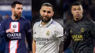 Los futbolistas, de izquierda a derecha, Lionel Messi (PSG), Karim Benzema (Real Madrid) y Kylian Mbappé (PSG). - EUROPA PRESS