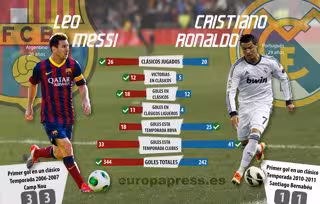 El clásico del domingo en el Santiago Bernabéu pondrá un buen pedazo de la Liga BBVA en juego y buena parte del devenir del campeonato dependerá de las dos estrellas que han encabezado ambos equipos en los últimos años: Leo Messi y Cristiano Ronaldo. Monopolizadores del Balón de Oro los últimos seis años.