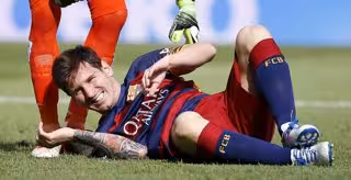El '10' del Barça se lesionó a los tres minutos de empezar el partido después de chocar con el balear Pedro Bigas cuando intentaba rematar a portería. El argentino, al poco tiempo, quedó tendido en el césped aquejado de un dolor en la rodilla izquierda.