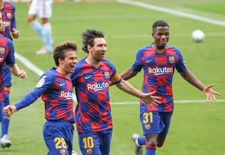 Riqui Puig, Leo Messi y Ansu Fati con el FC Barcelona - Irina R. H. / AFP7 / Europa Press