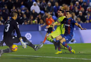 El cuadro de Ernesto Valverde sacó la victoria del único lugar que se le resistió la pasada campaña, con un Messi 'Pichichi' en 14 goles, decisivo una vez más cuando el Barça sufría. El Levante, que sigue en la línea de aquel que ganó al campeón 5-4, se quedó el centro del campo y tuvo un balón al larguero de Boateng antes de que se desatara la tormenta perfecta de Messi.
