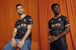 La nueva segunda equipación del Valencia tendrá Mestalla como principal protagonista con motivo del centenario del estadio, incluyendo el logo exclusivo creado por el club para rememorar esta efeméride en una camiseta que es en su mayor parte negra con los detalles en color naranja.