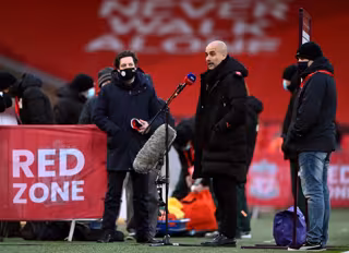 Pep Guardiola, entrenador del Manchester City, atiende a los medios tras el partido ante el Liverpool - Laurence Griffiths/PA Wire/dpa