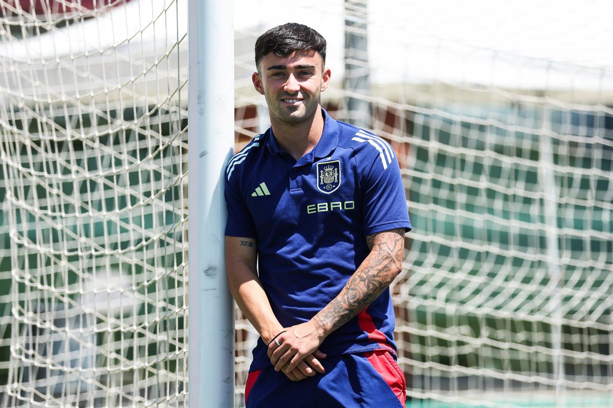 El centrocampista tinerfeño Alberto Moleiro posa para Europa Press antes del Europeo Sub-21 de 2025. - Irina R. Hipolito / AFP7 / Europa Press