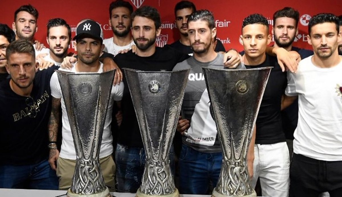 El central Nicolás Pareja, de negro y en el centro, en su etapa en el Sevilla FC - NICOLÁS PAREJA