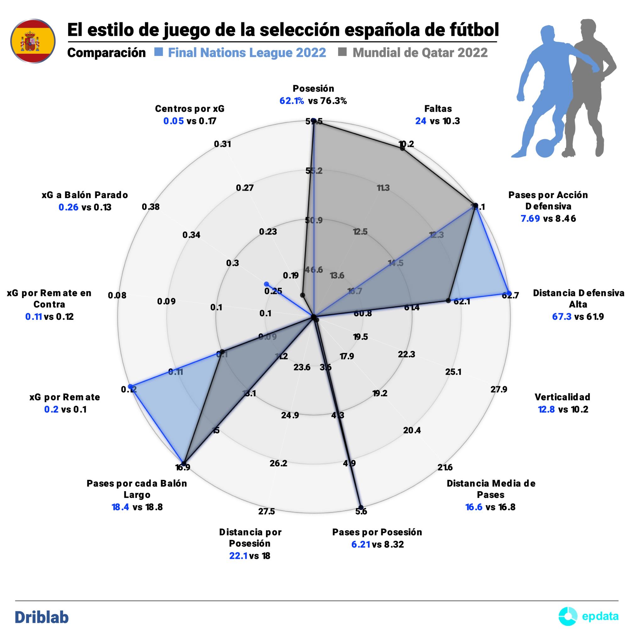 Pequeñas variaciones y muchas coincidencias entre la España de Luis Enrique y la de De la Fuente que hablan de la riqueza táctica que posee el fútbol actual. Habrá que esperar y dar más tiempo (De la Fuente solo ha dirigido 4 partidos) para ver si la idea del nuevo seleccionador cala y perdura en el tiempo, o sí por el contrario, la vuelta de jugadores como Pedri, la asemejan más a la de Catar.