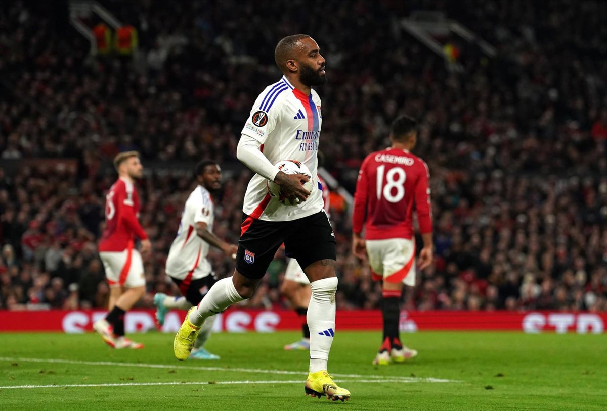 Archivo - Alexandre Lacazette celebra un gol del Olympique de Lyon en Old Trafford en la Liga Europa 24-25 - Martin Rickett/PA Wire/dpa - Archivo
