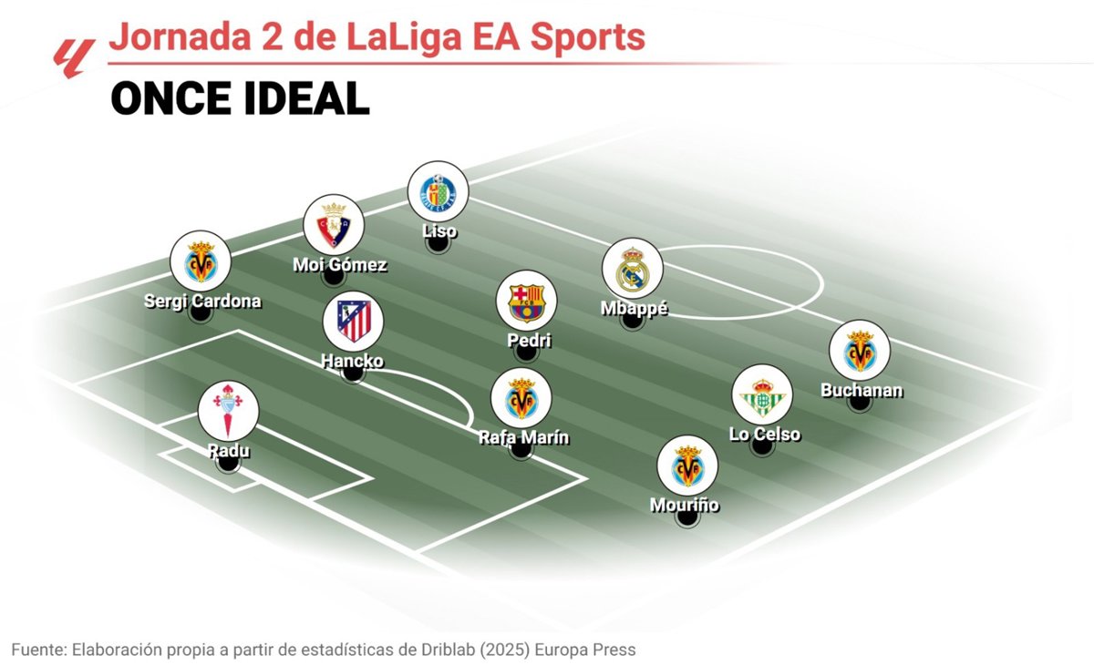 Once ideal de EP Deportes de la jornada 2 de LaLiga EA Sports 2025-26. - EPDATA