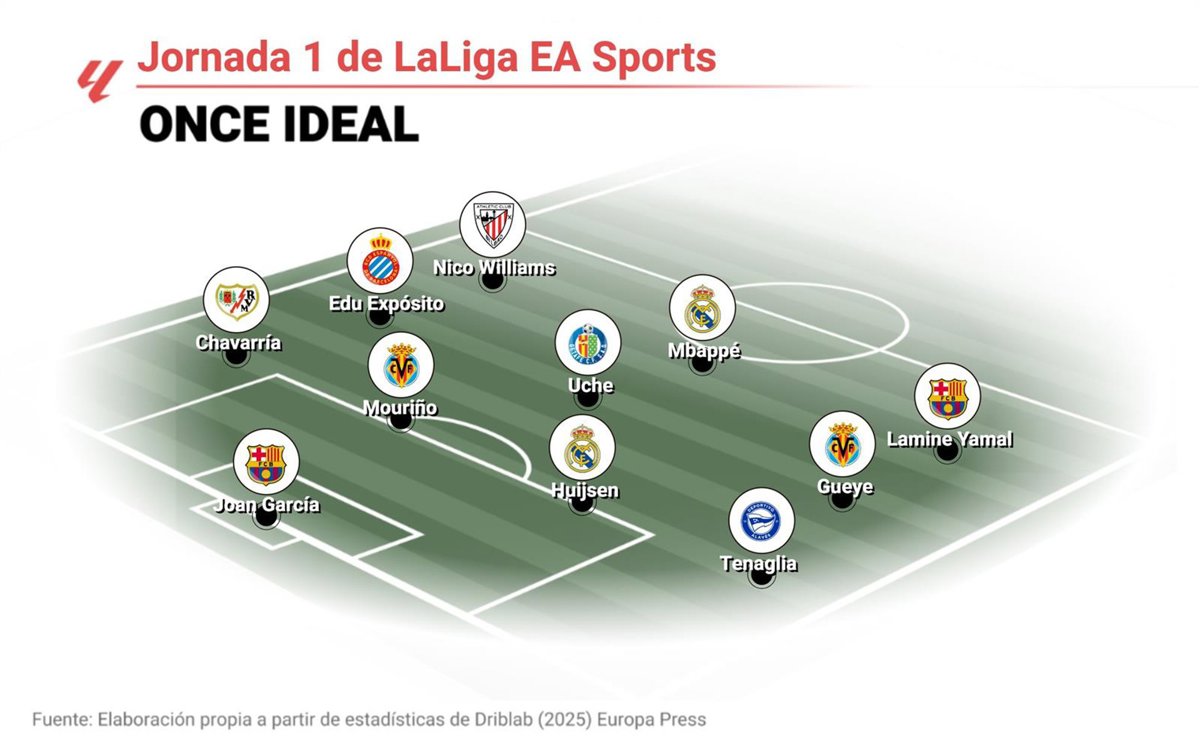 Once ideal de EP Deportes de la jornada 1 de LaLiga EA Sports 2025-26. - EPDATA