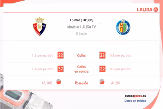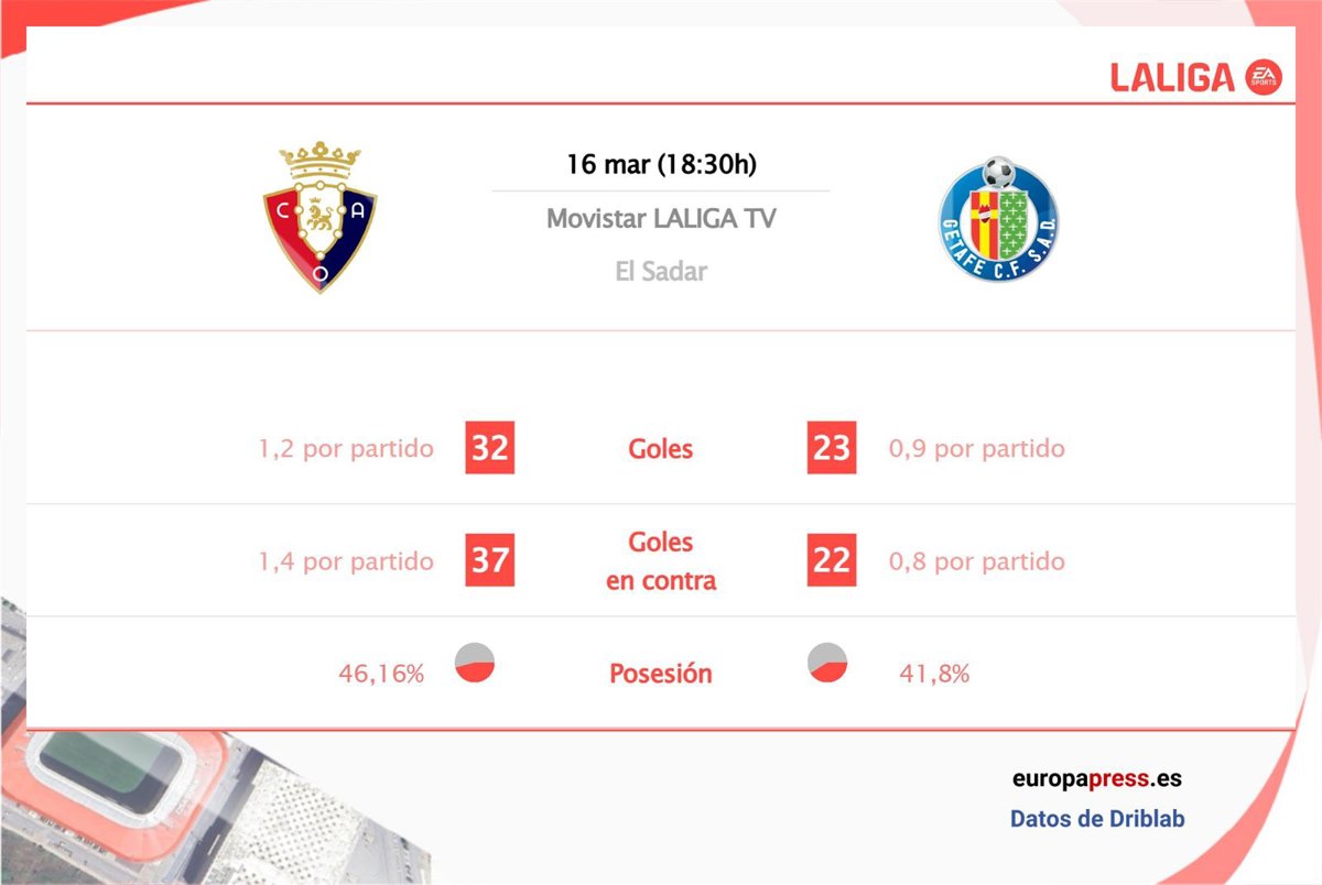 Estadísticas previa Osasuna vs Getafe. - EPDATA