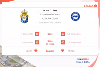 Estadísticas previa Las Palmas vs Deportivo Alavés. - EPDATA