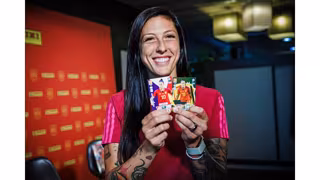 La máxima goleadora del combinado español, Jenni Hermoso, ha comentado el "orgullo" de estar en una colección de cromos y el "regalo" que es para ella que la gente desee tener su carta. "Es espectacular que tu sobrina pequeña tenga un cromo tuyo, te marca", recalcó.