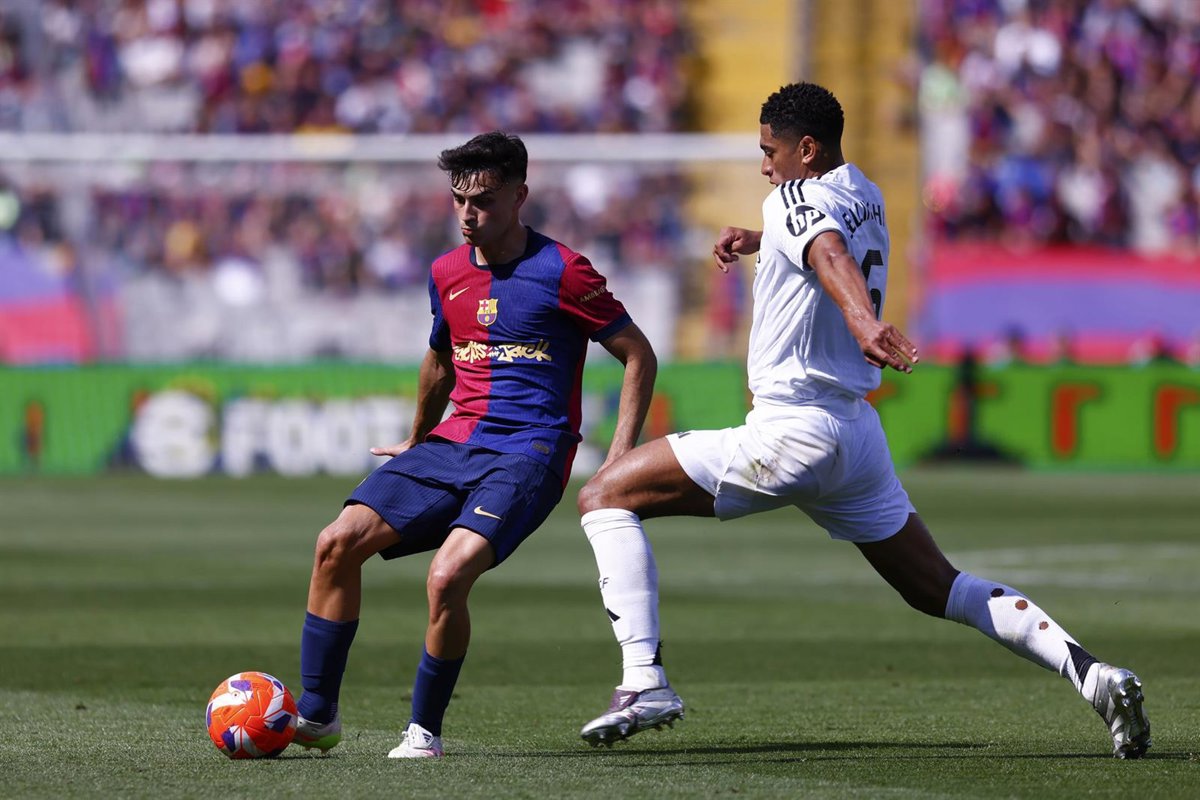 Archivo - Pedri Gonzalez (FC Barcelona) ante Jude Bellingham (Real Madrid) en un Clásico en Barcelona - Dennis Agyeman / AFP7 / Europa Press - Archivo