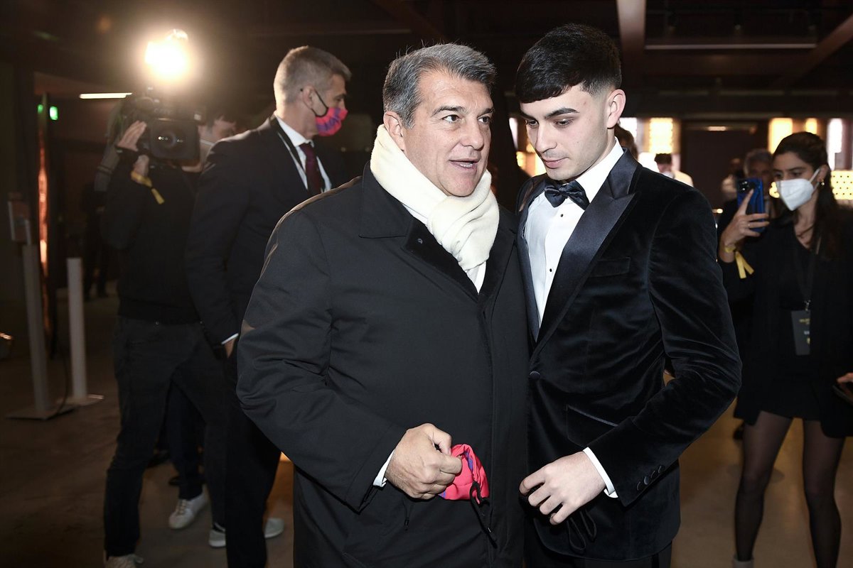 Pedri junto a Joan Laporta durante la ceremonia del Golden Boy 2021 - Nicolo Campo/LaPresse via ZUMA P / DPA