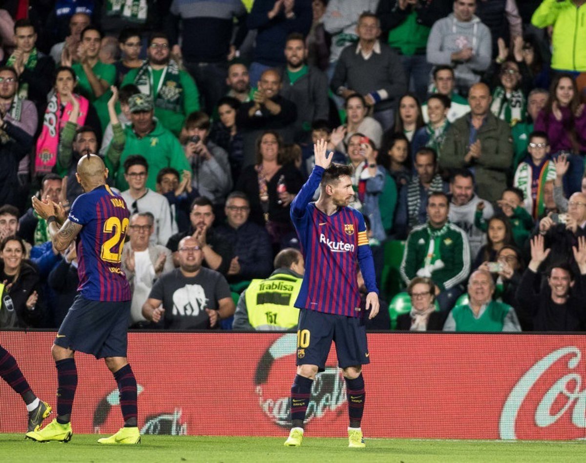 El último gol puso en pie a la grada rival, un Benito Villamarín que sintió la necesidad de aplaudir el recital de su verdugo. Con 29 goles, Messi comanda el Pichichi con 11 más que Luis Suárez, su compañero que también marcó este domingo y que lleva 18.