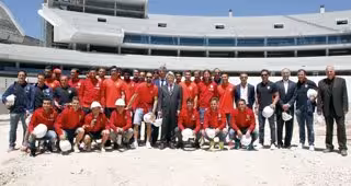 "Hemos hecho el recorrido que el primer equipo hará desde que llegue en el autobús, la entrada al vestuario, les hemos explicado las dependencias que tiene y hemos salido al terreno de juego para que tengan la sensación de pasar por el túnel. Será el recorrido habitual que hagan en el futuro", prosiguió, orgulloso de que su obra vaya cogiendo forma.