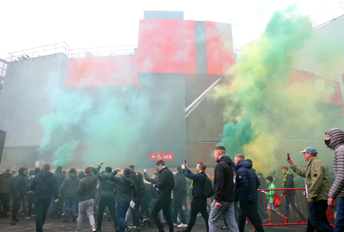 Los seguidores del United irrumpieron en el estadio e invadieron el campo en protesta por los dueños del club, la familia Glazer, después de que los 'red devils' hubieran sido uno de los 12 equipos que firmó a favor de jugar la Superliga. En las afueras del estadio se arrojaron botellas y diferentes objetos a los policías y sus caballos.