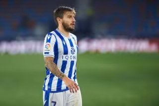 En lo que fue la mejor jugada del duelo, un robo en el medio lo convirtió el equipo 'txuri-urdin' en una rápida combinación entre Merino y Oyarzabal, que el capitán, que regresaba tras varios partidos fuera, concluyó con un 'pase de la muerte' a un Portu que le ganó la espalda a Yuri.