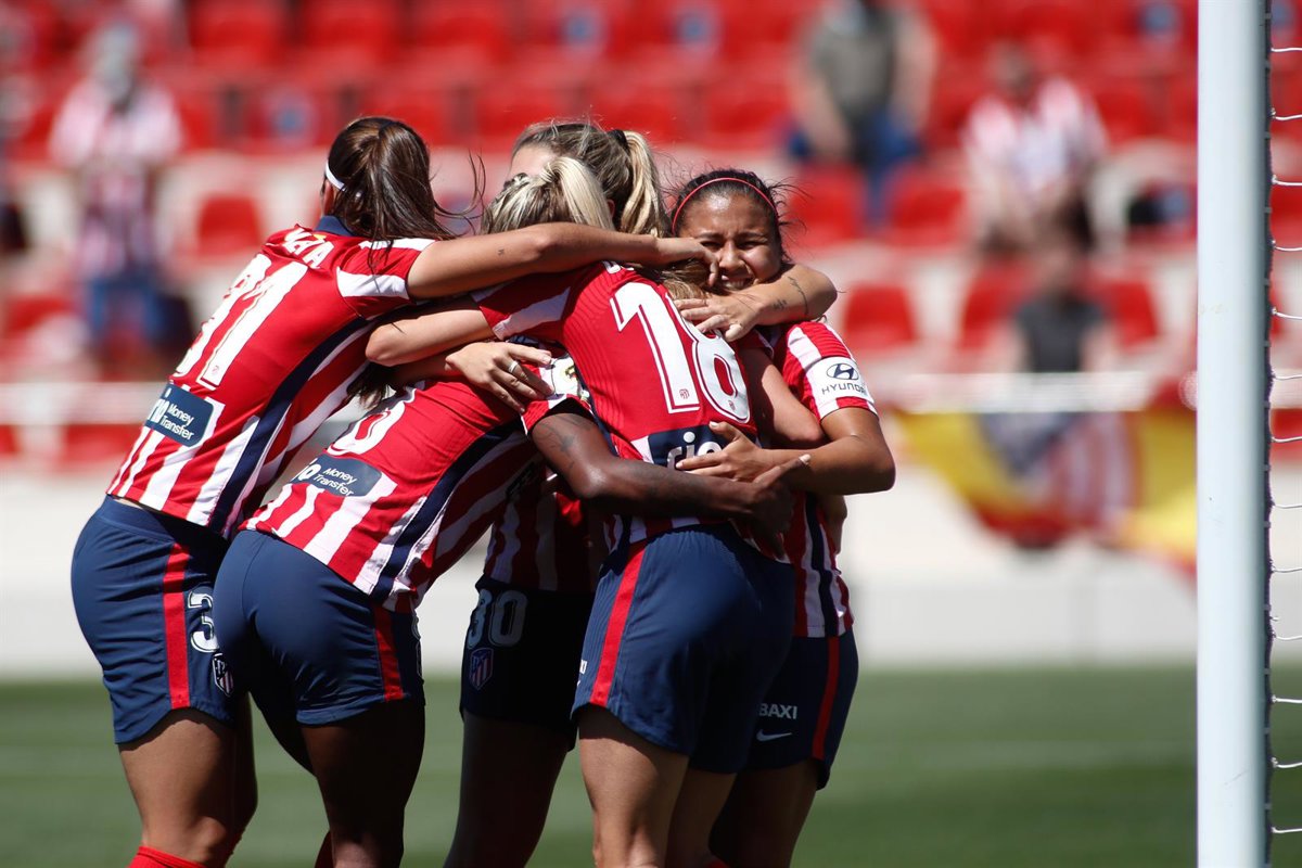 La jugadora del Atlético Ludmila da Silva celebra un gol con sus compañeras en un partido de la Primera Iberdrola. - Oscar J. Barroso / AFP7 / Europa Press