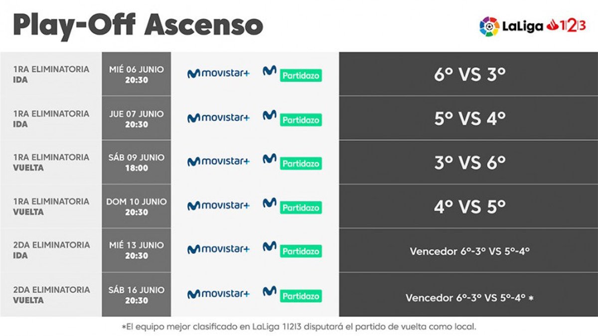 LaLiga ha anunciado este lunes que la promoción de ascenso desde la Liga 1/2/3 hacia la Liga Santander, en la que participarán cuatro clubes por el último billete a la máxima categoría, comenzará el miércoles 6 de junio y concluirá el sábado 16.