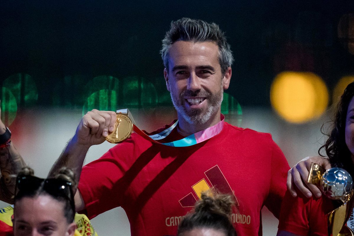 El seleccionador nacional femenino de fútbol, Jorge Vilda, muestra la medalla de oro como campeón del mundo en 2023. - Angel Perez Meca / Afp7 / Europa Press