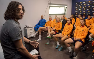 Carles Puyol en la charla con el primer equipo del FC Barcelona femenino - FC BARCELONA