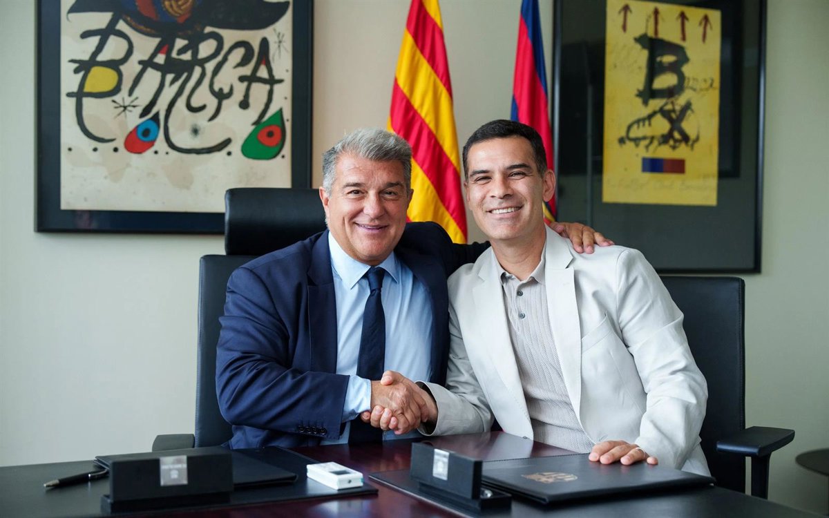 Márquez selló su continuidad junto al presidente, Joan Laporta, en un acto que también contó con la presencia del vicepresidente Rafael Yuste, el directivo responsable del Fútbol Formativo, Joan Soler, el presidente del Bara Atltic, Jordi Casals, y el director del Fútbol Formativo, José Ramón Alexanco.
