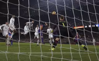 Cuando parecía que el Barça iba a ponerse a tres puntos del Real Madrid en la tabla e igualar la lucha por el título, cuando todo hacía presagiar un 1-0, llegó el 'salvador' Ramos para, de cabeza a la salida de una falta que no debió cometer Arda Turan, rematar impecable. Dominó primero el Madrid, después el Barça se repuso y anuló a los blancos pero, con ese 1-0 de Luis Suárez y varias ocasiones perdonadas por los blaugranas, llegó el empate para poner las tablas y dejar todo tal y como estaba, con el Madrid 6 puntos arriba.