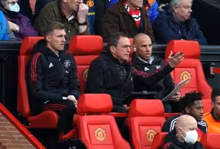 Ralf Rangnick habla con uno de sus asistentes durante un partido del Manchester United - Nick Potts/PA Wire/dpa