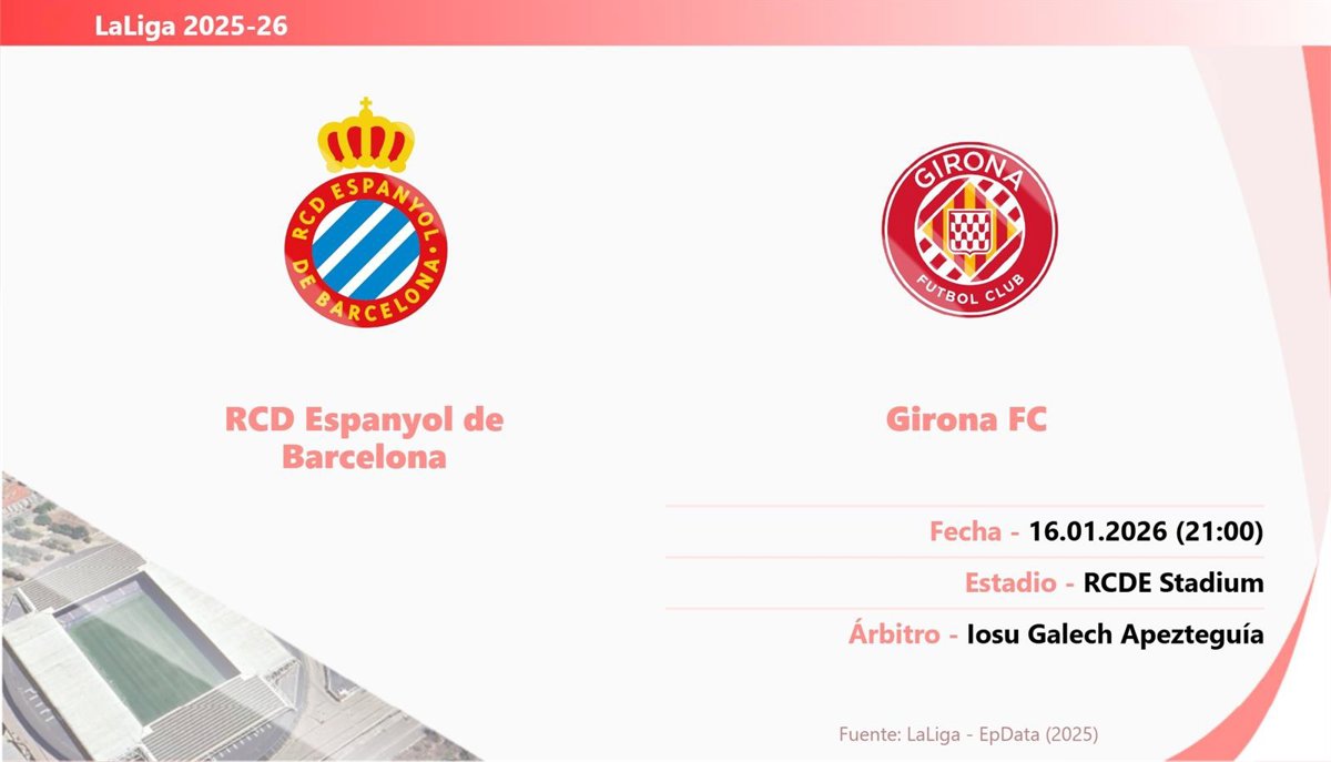 El RCD Espanyol y el Girona FC abren este viernes la jornada 20 de LaLiga EA Sports en el RCDE Stadium, en un derbi catalán con objetivos bien distintos, con los blanquiazules asentados en la zona europea y dispuestos a volver a la senda del triunfo y los 'gironins' en clara línea ascendente tras mejorar sensaciones y resultados en las últimas semanas.