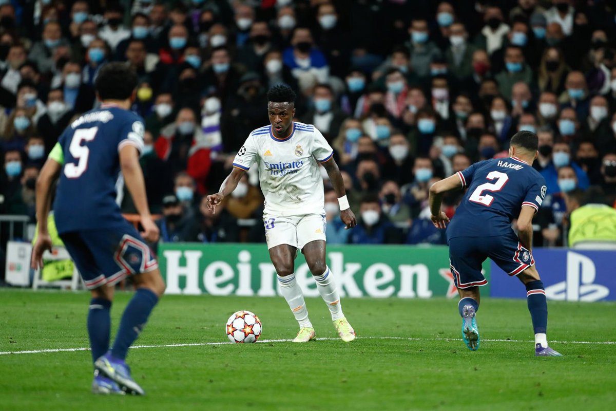 Archivo - Vinícius Júnior, del Real Madrid, encara al lateral Achraf Hakimi, del PSG, en la Champions 2021-2022. - Oscar J. Barroso / AFP7 / Europa Press - Archivo