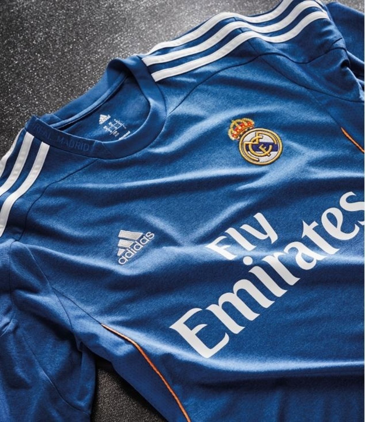 Asimismo, la camiseta cuenta con toques naranjas en los costados, al igual que la primera equipación, aunque sigue siendo el azul el color predominante, en el que supone el regreso del conjunto madridista a un azul que, durante mucho tiempo, conformó su segundo uniforme.