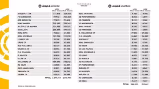 En LaLiga SmartBank, el Eibar, con 30,1 millones y el Valladolid, con 29,8, dos de los tres clubes descendidos, junto al Huesca, el pasado ejercicio son los clubes que disponen de un límite salarial superior, muy por encima del recién ascendido Amorebieta, el 'colista' de esta tabla, con 4,7.