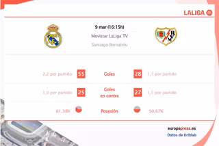 Estadísticas previa Real Madrid vs Rayo Vallecano. - EPDATA