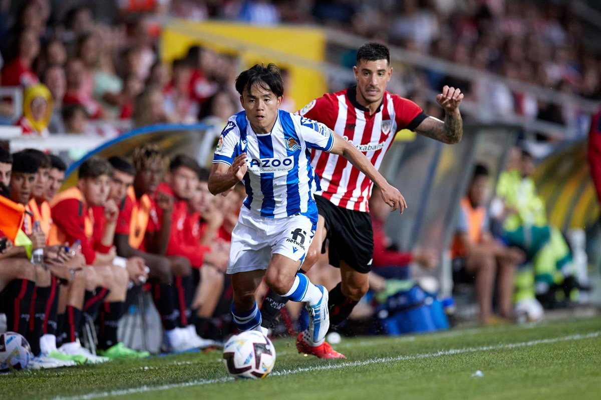 Archivo - Takefusa Kubo (Real Sociedad) se marcha de Yuri Berchiche (Athletic Club), en un partido amistoso en 2022. - Ricardo Larreina / AFP7 / Europa Press - Archivo