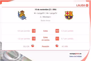 En el panorama ofensivo, el conjunto azulgranas supera a los donostiarras en goles por partido con 3,3 goles por encuentro del primero frente a 0,8 del segundo. En cuanto a la calidad de las ocasiones de gol generadas, los catalanes también se imponen a los guipuzcoanos con 1,9 goles esperados frente a 1, según las estadísticas de Driblab consultadas por Europa Press.