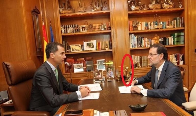 En las imágenes difundidas durante su encuentro con el presidente del Gobierno, Mariano Rajoy, se puede apreciar en la mesa del despacho una réplica de la la Copa del Mundo que ganó la Selección Española de Fútbol en 2010 en Sudáfrica.