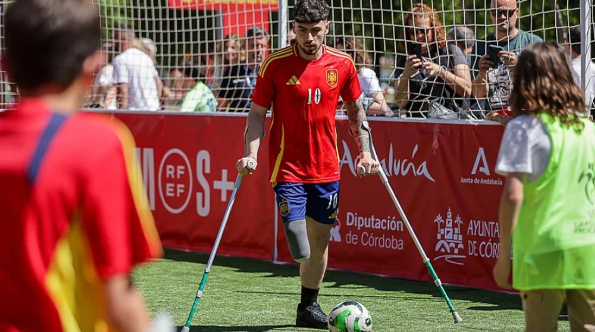La Fan Zone habilitada junto al Bahrain Victorious Nuevo Arcángel de Córdoba con motivo del partido de clasificación para el Mundial de Brasil 2027 entre la selección española femenina de fútbol y Ucrania ha albergado este sábado un espectáculo de fútbol para amputados en el que han participado cuatro jugadores de la Federación Española de Deportes de Personas con Discapacidad Física (FEDDF).