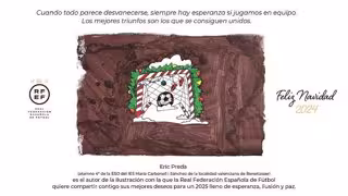 La RFEF se puso en contacto con uno de los centros educativos de las localidades más afectadas y llegó hasta el autor de la imagen elegida: Eric Preda, alumno de 4 de la ESO del IES María Carbonell i Sánchez de la localidad valenciana de Benetússer. Su imagen fue escogida entre decenas de propuestas recibidas por la RFEF, y que "ilustra un sentimiento de solidaridad unido a los deseos del fútbol español de un año 2025 lleno de esperanza, ilusión y paz".