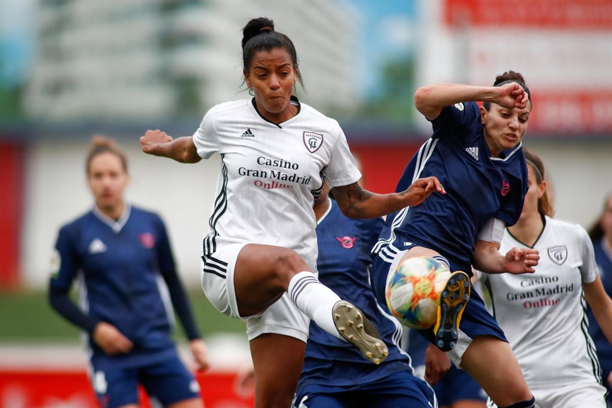 Geyse Ferreira y Aurelie Kaci disputan un balón en el Madrid CFF-CD Tacón de la Primera Iberdrola 2019-2020 - Oscar J. Barroso / AFP7 / Europa Press
