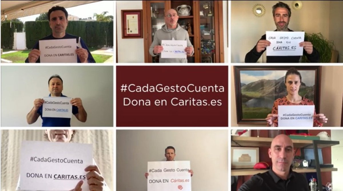 La Real Federación Española de Fútbol (RFEF) se ha sumado a la campaña de Cáritas #CadaGestoCuenta, con la que la entidad social busca obtener fondos para mantener y reforzar sus programas de atención a las personas más vulnerables ante la pandemia de coronavirus.