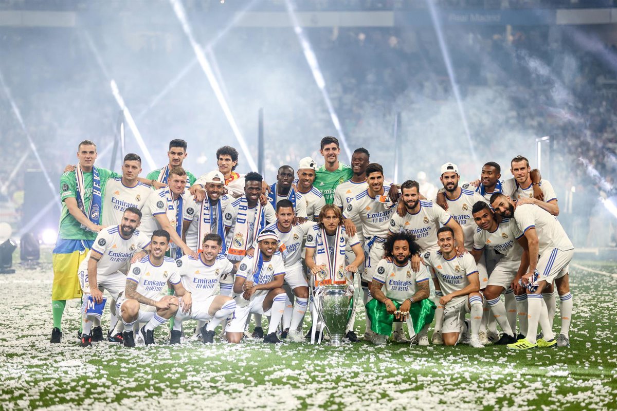 Archivo - Los jugadores del Real Madrid posan con el trofeo de la Liga de Campeones de 2022 en el acto de celebración en el Santiago Bernabéu el 29 de mayo de 2022. - Oscar J. Barroso / AFP7 / Europa Press - Archivo