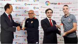 El entrenador del Sevilla, Jorge Sampaoli, y el jugador del Celta de Vigo Iago Aspas han sido nombrados este lunes 'Mejor Técnico' y 'Mejor Jugador' de LaLiga Santander en el mes de octubre, según informó LaLiga.