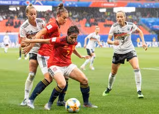 Marta Corredera protege el balón en el España-Alemania del Mundial de Francia 2019 - Sebastian Gollnow/dpa - Archivo