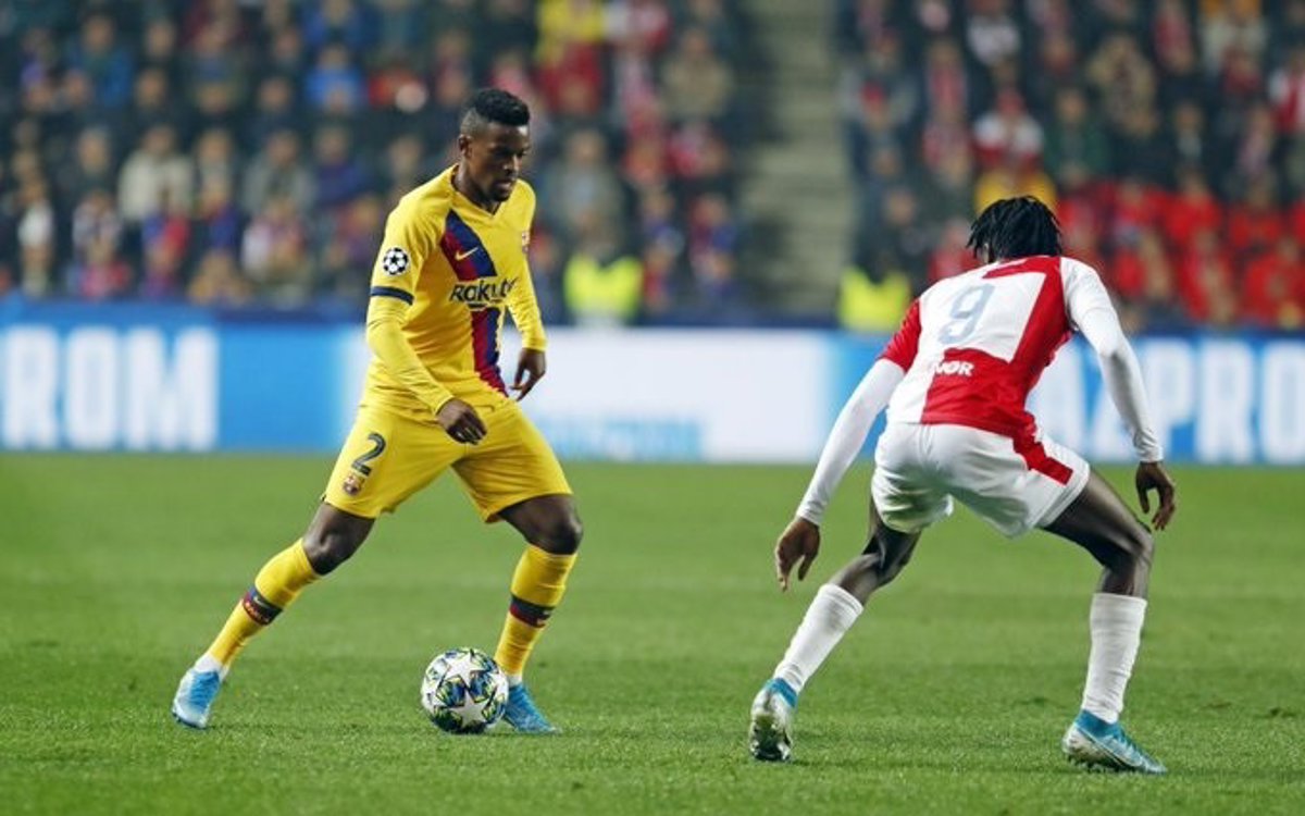 El jugador del FC Barcelona Nelson Semedo en el partido contra el Slavia Praga en la Liga de Campeones - FC BARCELONA