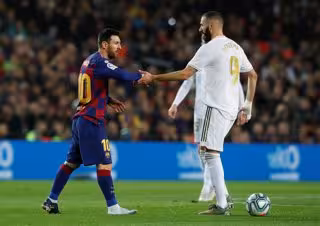 Leo Messi y Karim Benzema, en un partido entre FC Barcelona y Real Madrid. - REUTERS / ALBERT GEA