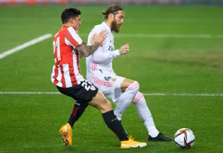 Archivo - Sergio Ramos pugna con Ander Capa durante la semifina de la Supercopa de España 2021 - Joaquin Corchero / AFP7 / Europa Press - Archivo